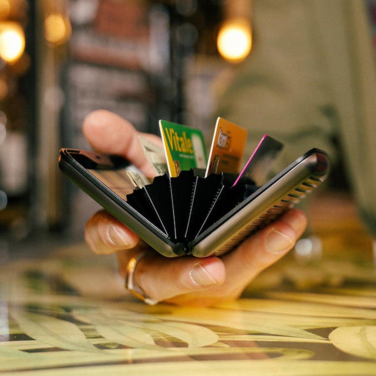 - Fassungsvermögen bis zu 10 Karten + Belege + Geldscheine