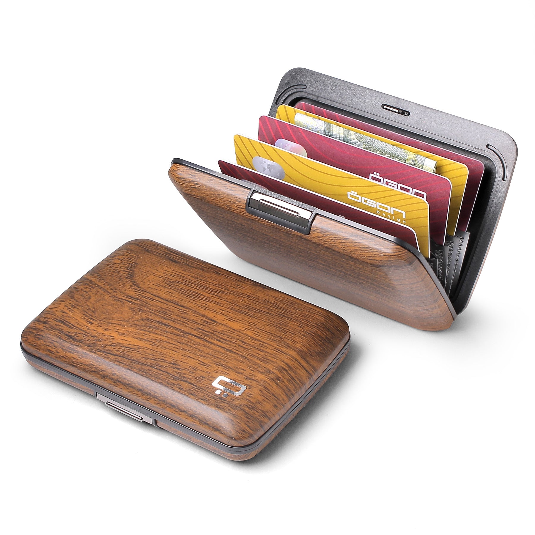 El fuerte y duradero cierre metálico mantiene sus tarjetas seguras y accesibles en un segundo.